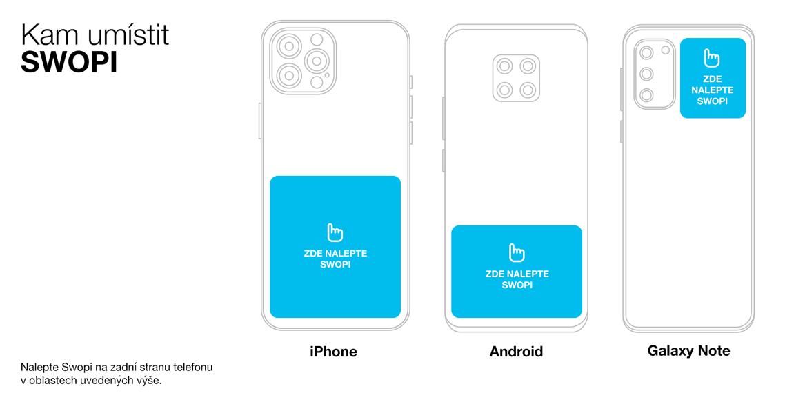 U telefonů Galaxy a Note je nejlepší umístění vedle kamery. Ujistěte se a vyzkoušejte nejlepší umístění, než Swopi nalepíte definitivně na jedno místo.