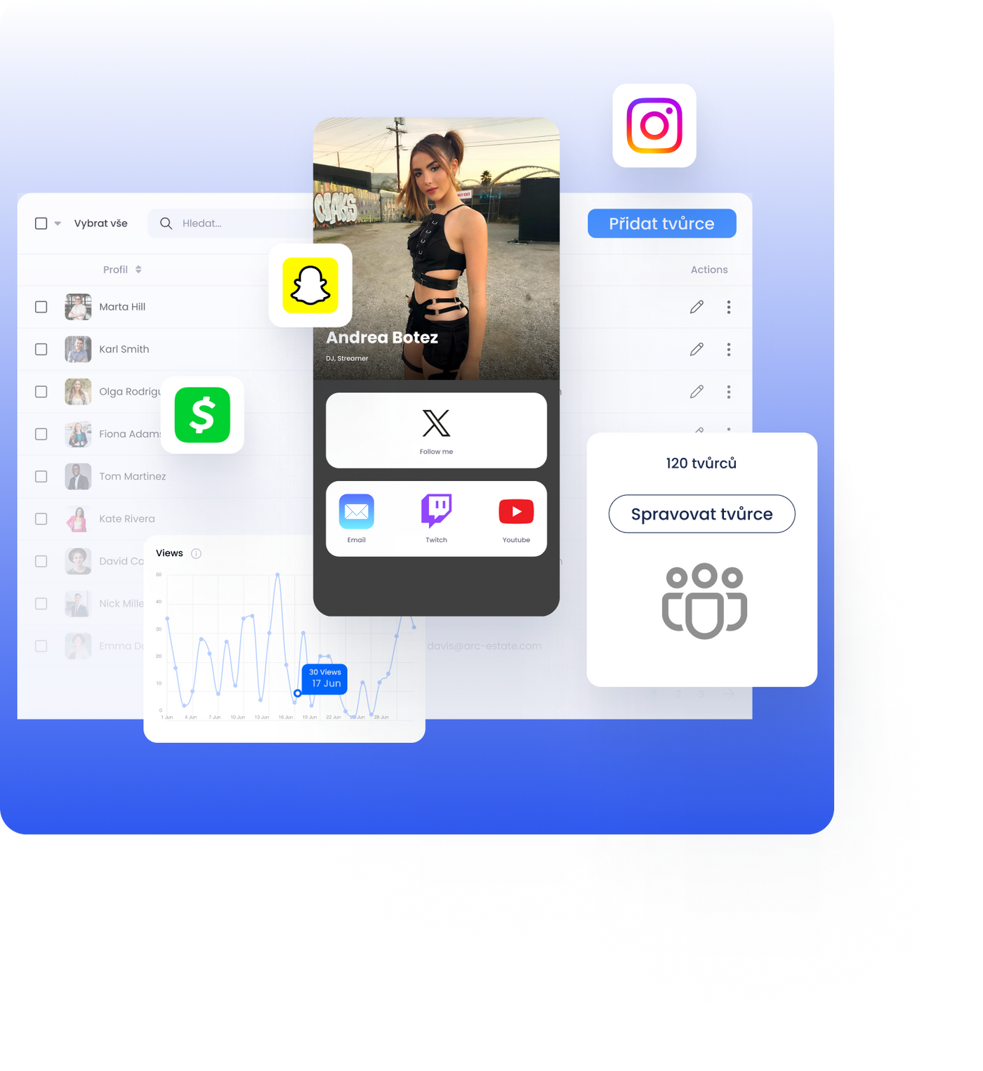 Spravuj všechny své tvůrce z jednoho místa. Propaguj své tvůrce a svou značku v tom nejlepším světle s vlastními logy a brandingem.