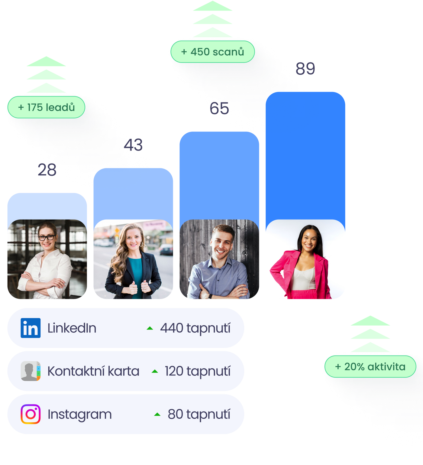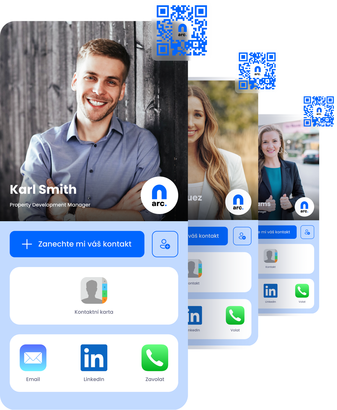 Účastníci naskenují QR kód z tvého pozadí a okamžitě získají tvou vizitku. Moderní přístup pro moderní profesionály.